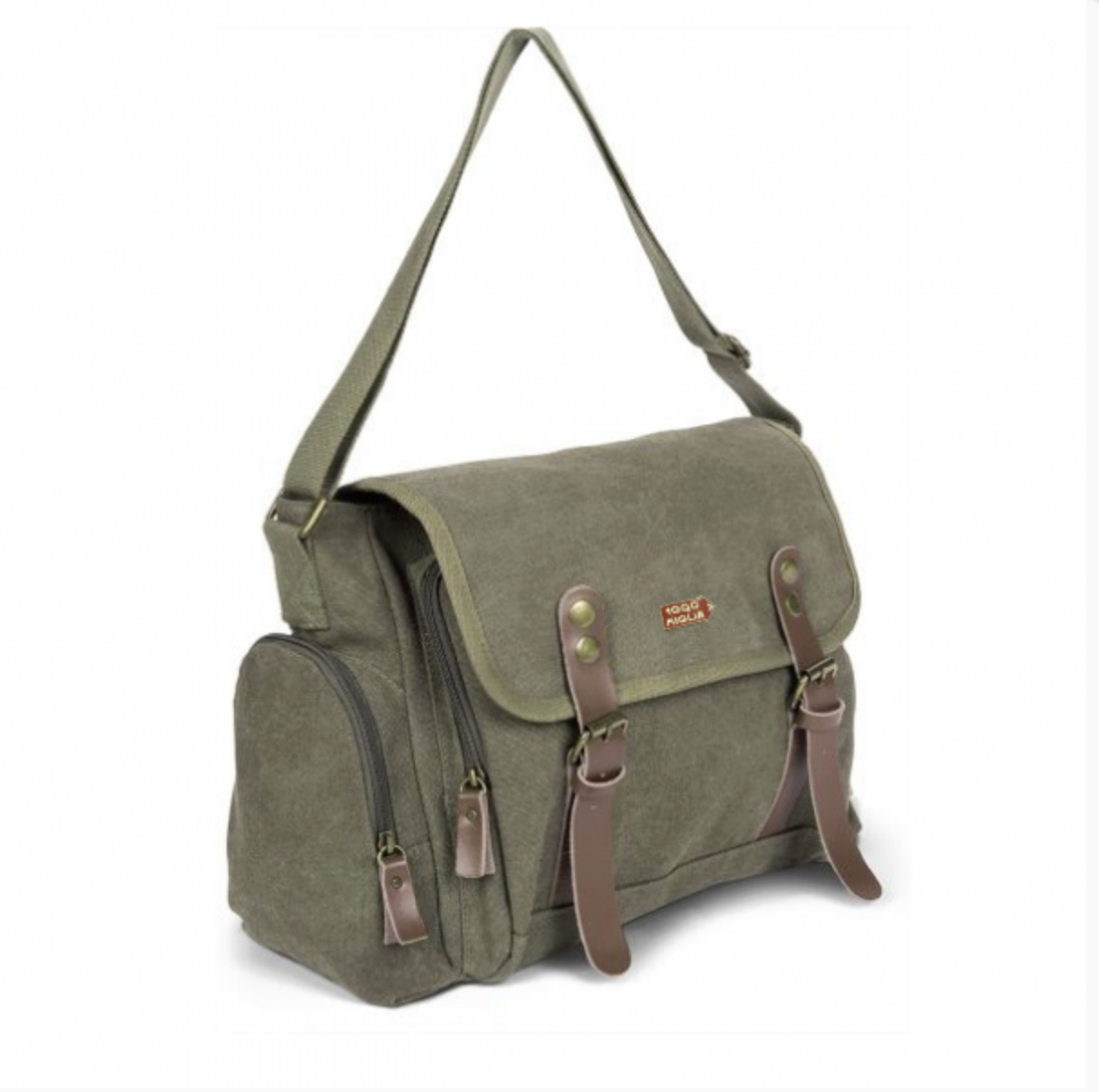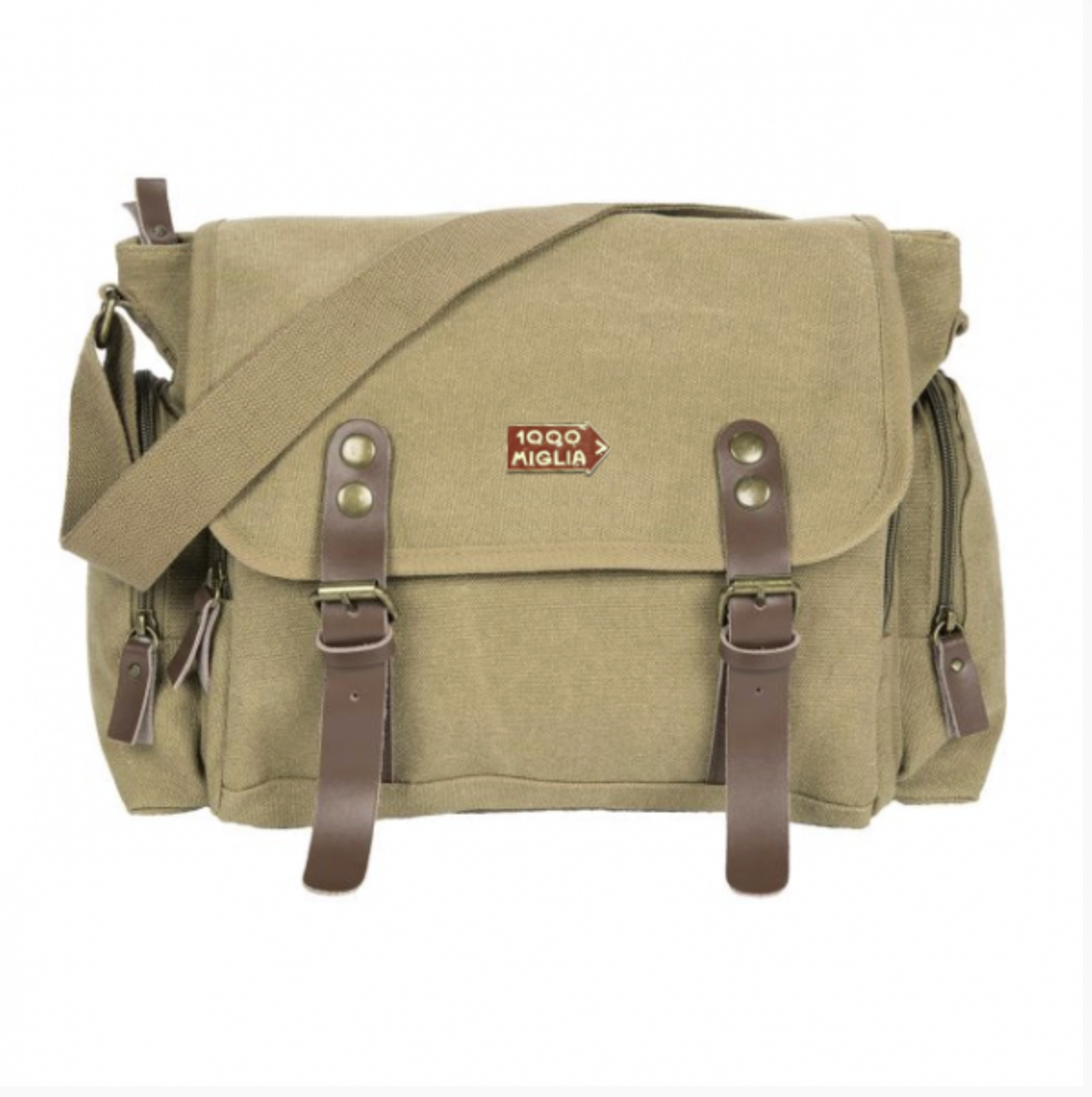 Tracolla in policotone canvas con effetto vintage e inserti in vera pelle.